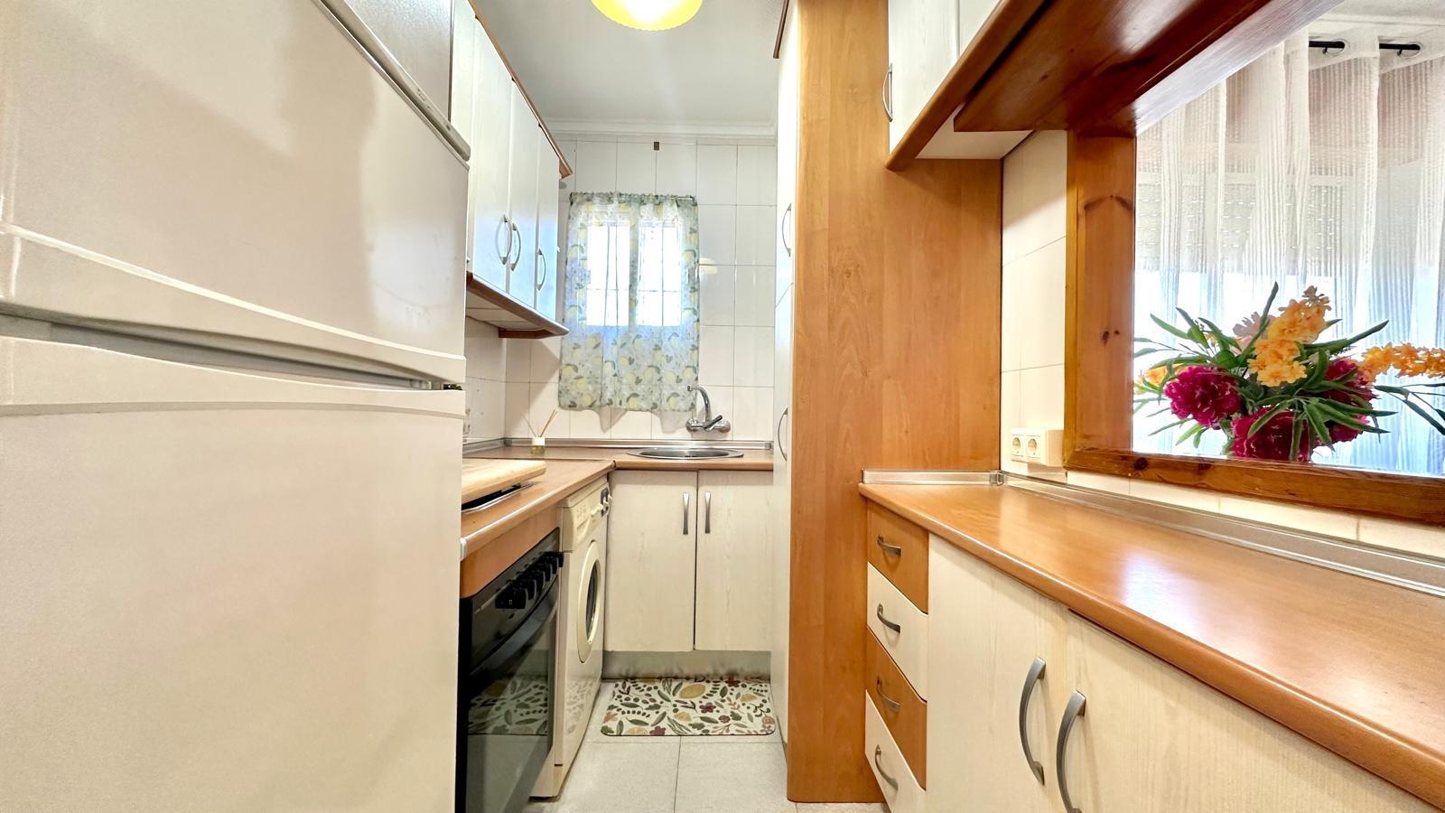 Discover this charming 1-bedroom apartment in the peaceful El Chaparral area of Torrevieja, perfect for those seeking a calm residential setting close to services and just minutes from the beaches. This property is ideal as a permanent home, holiday retreat, or rental investment, and is sold fully furnished, ready to move in from day one. Inside, the apartment is well laid out and functional. The bright living-dining area is the heart of the home, offering space to relax, dine, and spend time with family or friends. The kitchen is practical and fully equipped, designed for ease of use and daily convenience. The bedroom is spacious and peaceful, while the bathroom is fully functional and practical. Its ready-to-live-in condition makes it an excellent option for investors seeking rental income in the highly demanded La Siesta area. The neighborhood is quiet, residential, and well connected, providing easy access to shops, restaurants, and public transport, while still being close to Torrevieja’s beaches and city center. A perfect opportunity for comfort, convenience, and a relaxed lifestyle on the Costa Blanca. SUMA/IBI (property tax): 208 € per year COMUNIDAD (Association fee) : 30 € per month