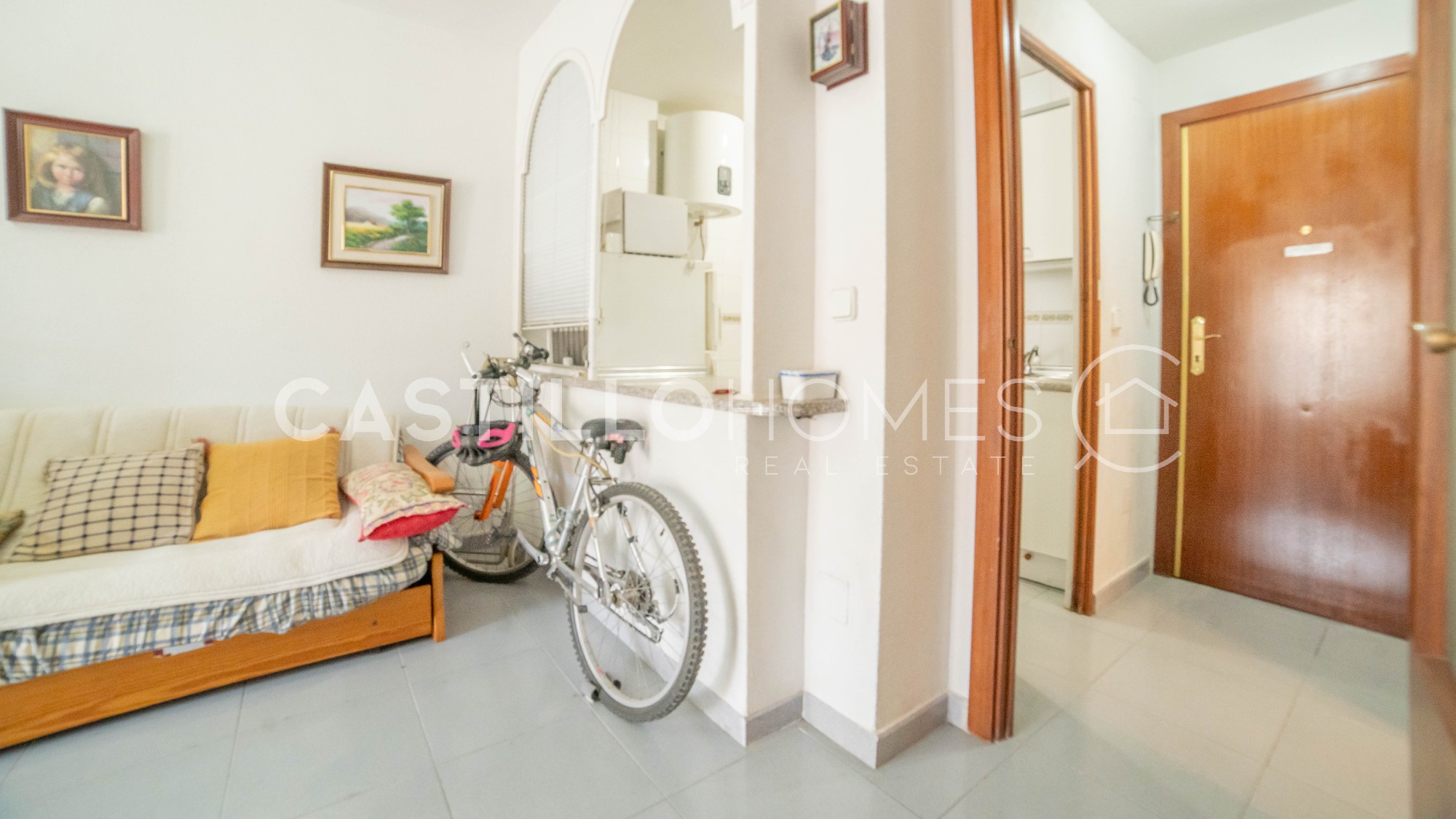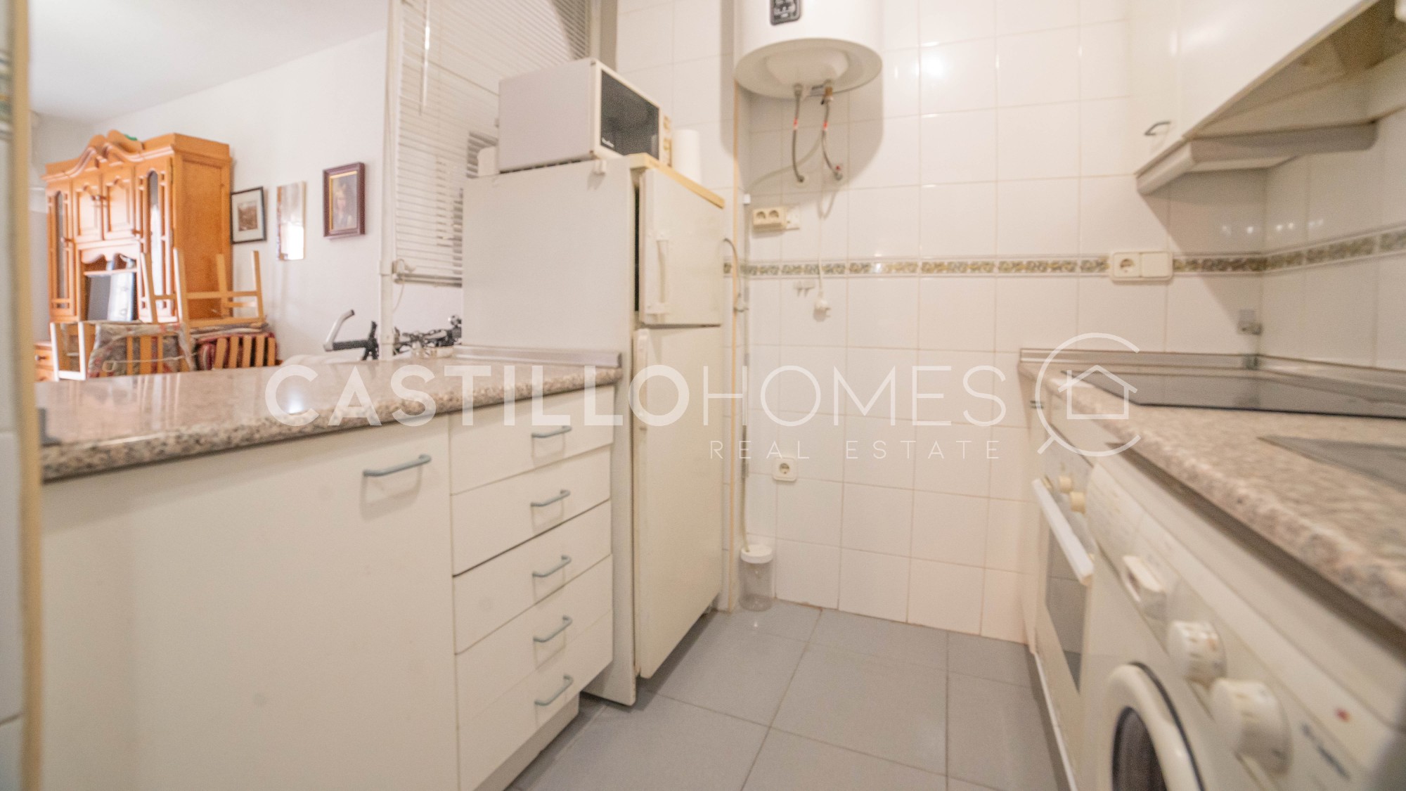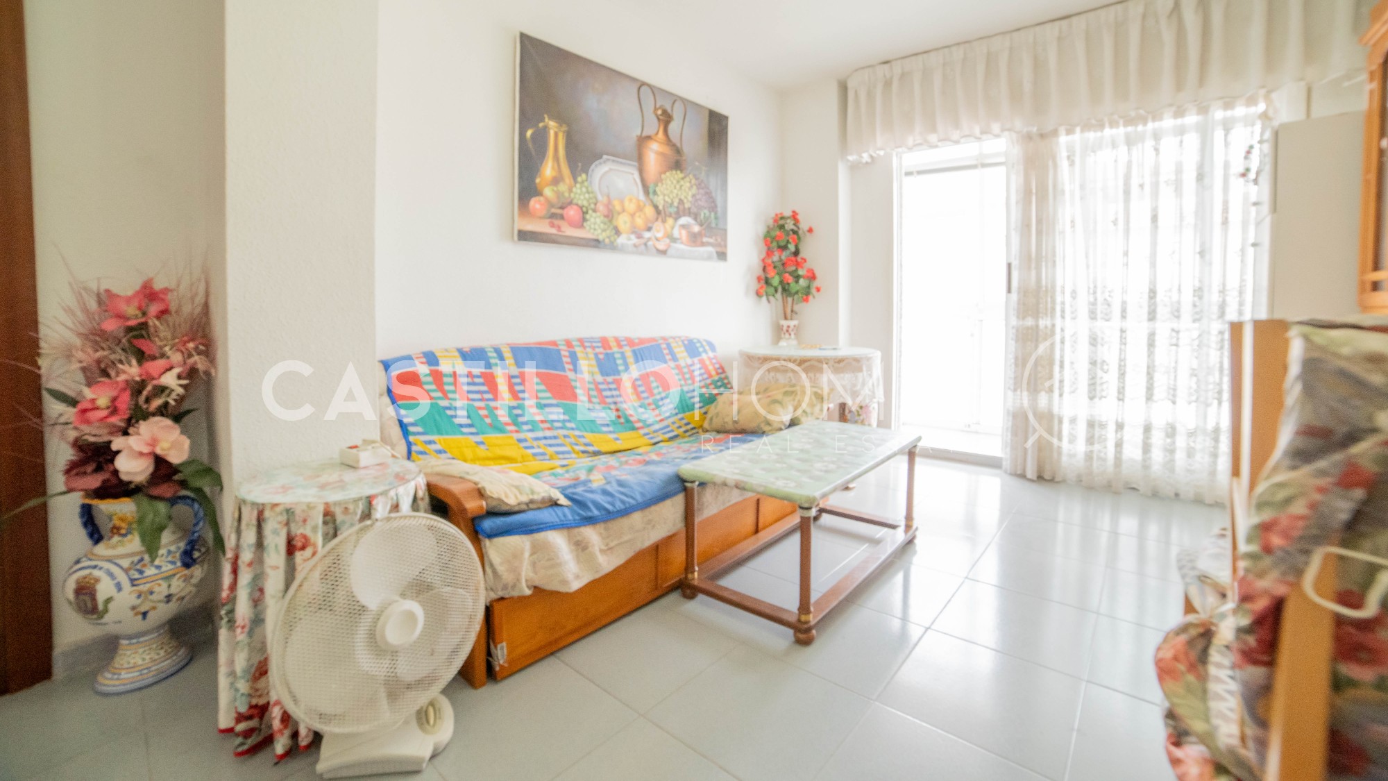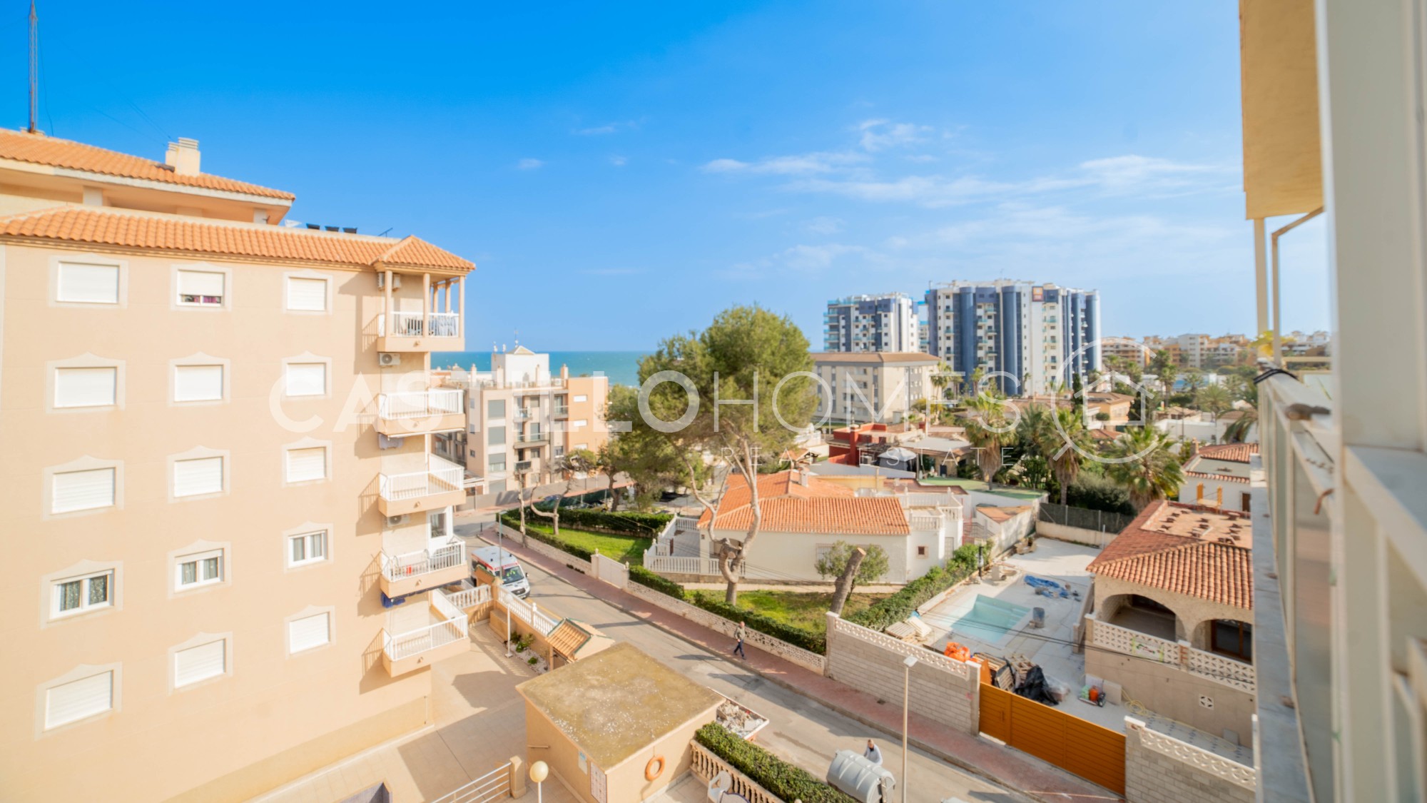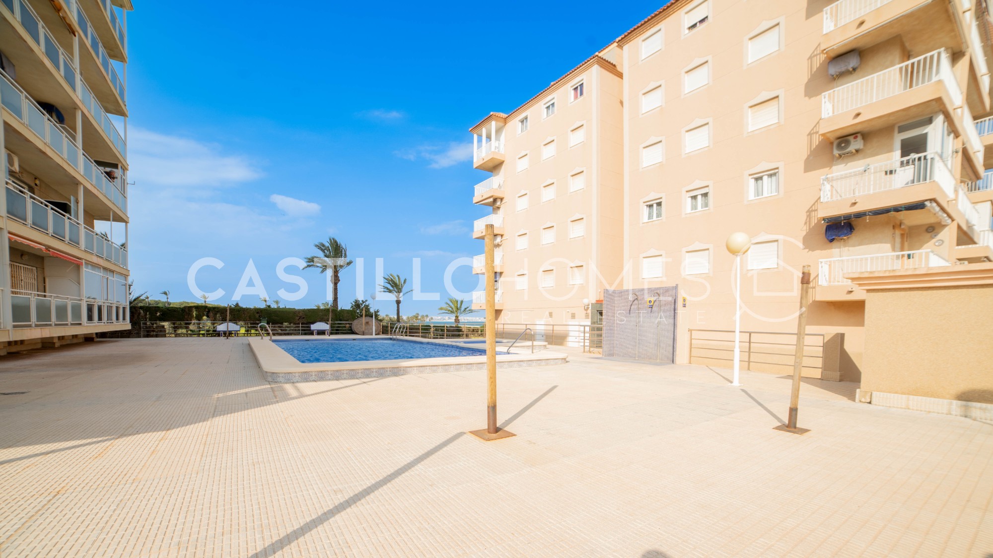 Castillo Homes is pleased to present this charming apartment for sale in the highly sought-after area of Punta Prima. Punta Prima is one of those special locations where people dream of living or spending their holidays. And it’s easy to see why: stunning beaches are just minutes away, and you can enjoy the sunshine of the Costa Blanca all year round in a relaxed Mediterranean setting. Ideally located, the property sits between the vibrant city of Torrevieja, home to the famous pink lagoon, and the popular Orihuela Costa, where you will find one of the region’s most renowned shopping destinations, Zenia Boulevard. This bright and well-maintained apartment is situated on the 5th floor and offers 1 bedroom and 1 bathroom. The layout is both practical and inviting, with plenty of natural light thanks to its excellent south facing orientation. Sold fully furnished, the property is ready to move into and enjoy from day one. From the living room as well as from the bedroom, you can take in lovely views that create a peaceful and relaxing atmosphere. The highlight of the home is the spacious balcony, where you can enjoy your morning coffee while watching the sunrise over the Mediterranean Sea, with views extending over a beautiful palm tree reserve. Just a short 250 meter walk away, you’ll reach the seafront, along with the well known restaurant Nautilus, perfect for enjoying excellent meals by the sea. A variety of bars, restaurants, and shops are also within easy walking distance, making everyday life both convenient and enjoyable. This property is an excellent opportunity in one of the most desirable areas on the Costa Blanca, a perfect choice whether as a holiday home, investment, or permanent residence. Year of construction: 1990Floor: 5 out of 6 SUMA/IBI (property tax): 94 € per year COMUNIDAD (Association fee): 27€ per month