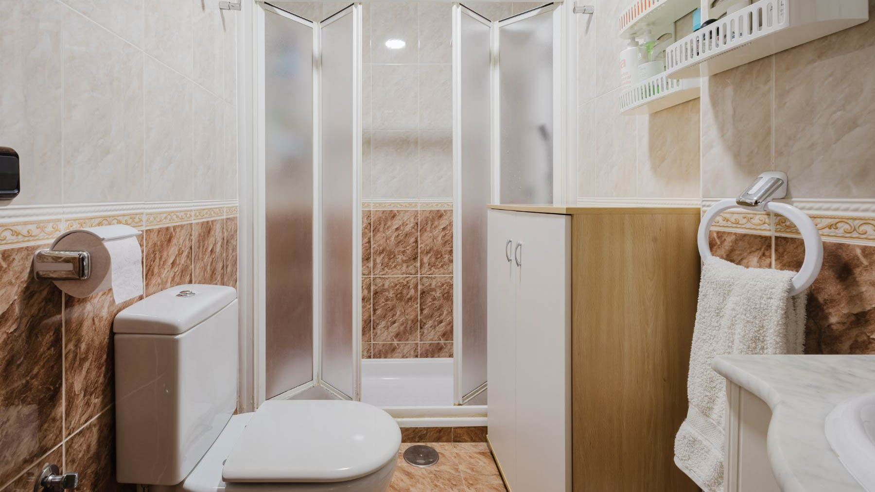 Bright and spacious fifth-floor apartment in an exceptional seafront location by Playa del Acequión in Torrevieja. This approximately 100 m² built home offers an excellent opportunity to enjoy the Mediterranean lifestyle in a frontline setting with lateral sea views. The property is in good condition and is sold furnished, making it ready to move in immediately. Its northeast orientation ensures a pleasant temperature throughout the year, providing comfortable living even during the warmer months. The layout is spacious and functional, featuring three generously sized bedrooms and two bathrooms, offering comfort for both family living and guests. The separate kitchen is practical and well laid out, while the bright living room opens directly onto a 15 m² terrace, ideal for enjoying the sea breeze and open views. The building offers a lift and a communal swimming pool for residents, as well as direct access to the beach, adding to the exclusivity of the location. All daily amenities such as shops, pharmacies, restaurants, and services are within walking distance. This property is ideal as a permanent residence, holiday home, or investment thanks to the strong rental demand in the area. A rare opportunity to acquire a spacious seafront apartment in one of the most desirable areas of Torrevieja. Year of construction: 1980 Floor: 5 SUMA/IBI (property tax): 306 € per year COMUNIDAD (Association fee): 35 € per month