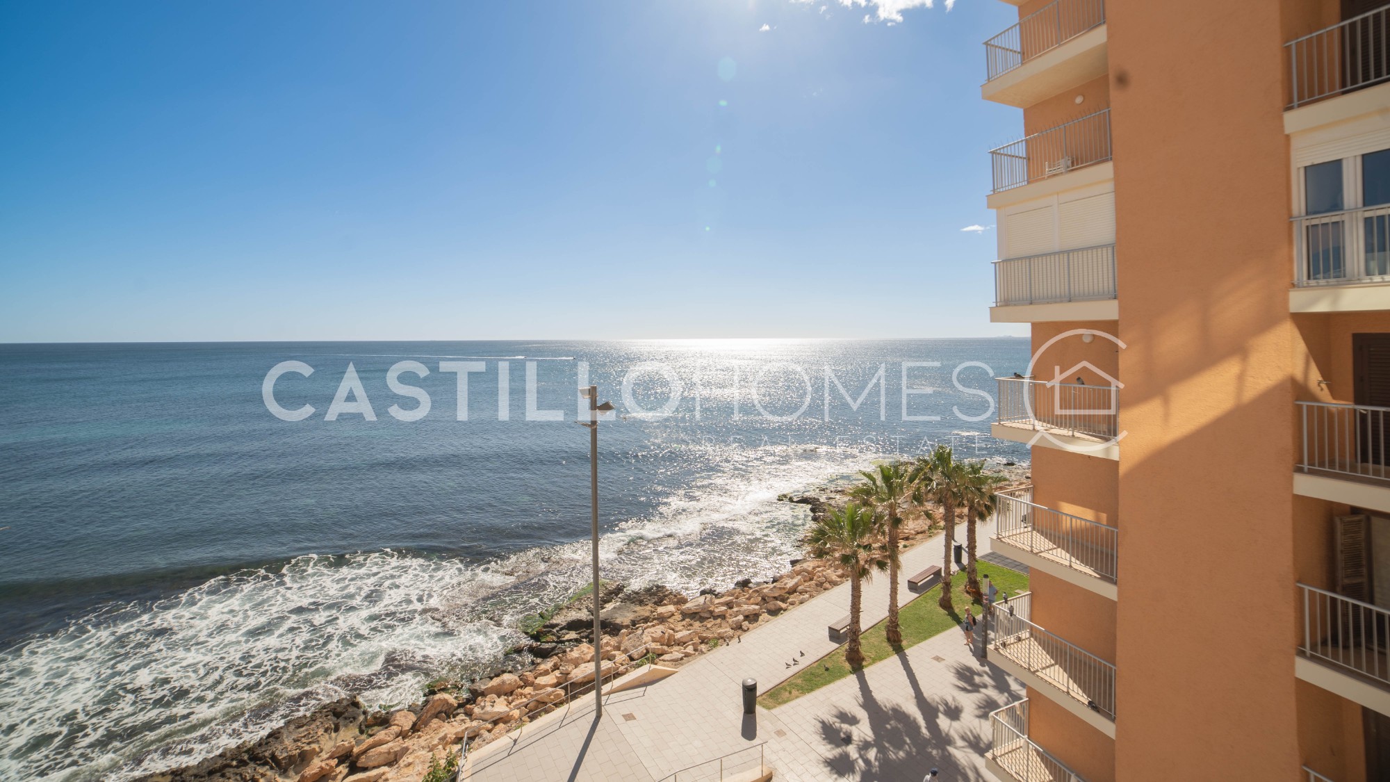 This stunning apartment is located on the first line by the sea and offers direct sea views from the master bedroom, living room, and balcony. Situated on the fourth floor, it provides a unique opportunity to enjoy a coastal lifestyle every day. Upon entering the property, you will find a separate kitchen on the left along with a practical utility room that houses an additional refrigerator, washing machine, and water heater. This arrangement frees up space in the kitchen, making it comfortable and functional for cooking. The kitchen itself is equipped with a sink, refrigerator, and oven and is designed for everyday convenience. Moving through the hallway to the right, there are two bedrooms followed by an exceptionally spacious dining and living area. The entire exterior wall of the living room is lined with large windows that flood the space with natural light and create the sensation of living almost on top of the sea. The views are truly beautiful and ever present. From the living room, there is direct access to the balcony where you can enjoy the scenery while breathing in the fresh sea air. Beyond the living room lies the master bedroom, featuring wall to wall windows that allow sunlight to pour in and showcase the ocean view. Waking up here means starting the day with sunlight and calming coastal scenery. The apartment also includes a fourth bedroom positioned toward the inner courtyard, offering a peaceful space ideal for guests, work, or family use. Adjacent to this are two bathrooms, one serving as a smaller toilet room and the other being more spacious. The apartment is in very good condition and is sold unfurnished, allowing the new owner to furnish and style it according to personal taste. It is perfectly suited both as a permanent residence and as a holiday home for those who appreciate proximity to the sea, open views, and bright living spaces. Located near La Cura beach, the apartment sits in the heart of a lively and pleasant area filled with restaurants, bars, and services all within walking distance. There is also the option to purchase one or even two parking spaces separately. The location blends seaside atmosphere, urban convenience, and coastal living with everything you need right outside your door. Floor: 4 out of 8 SUMA/IBI (property tax): 449 € per year COMUNIDAD (Association fee) : Pending