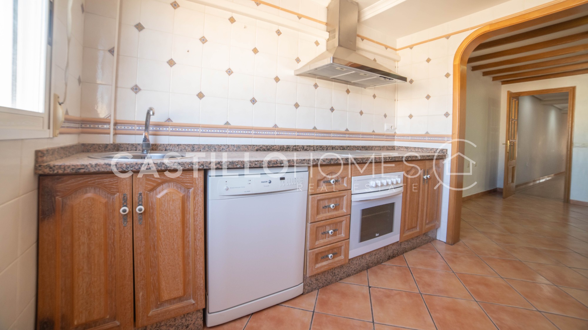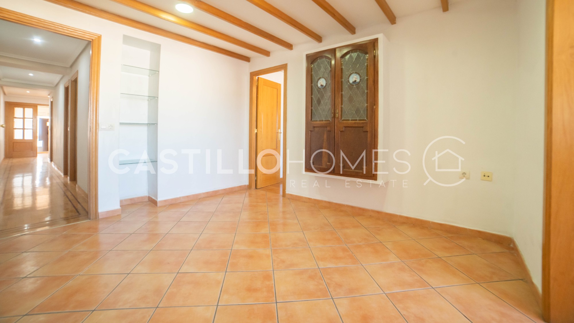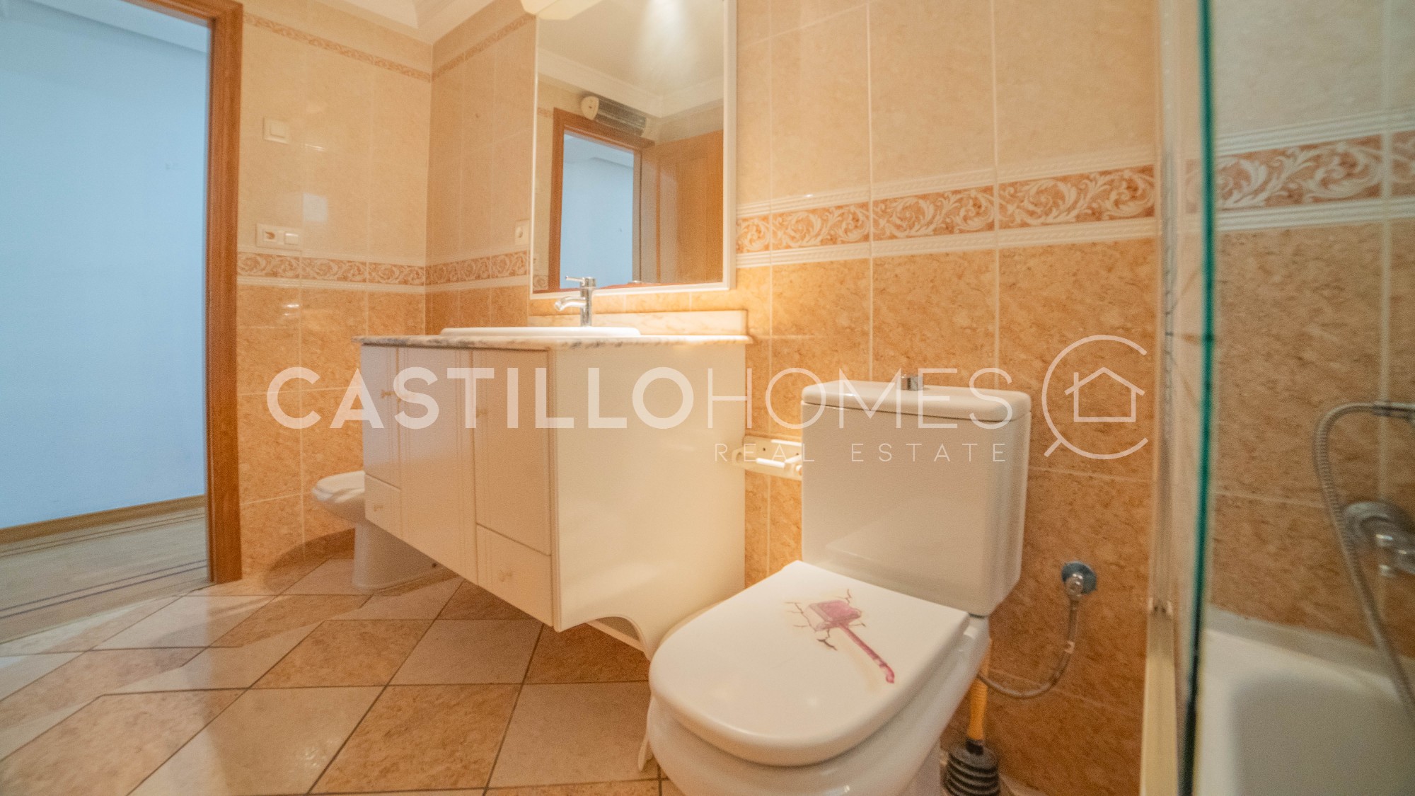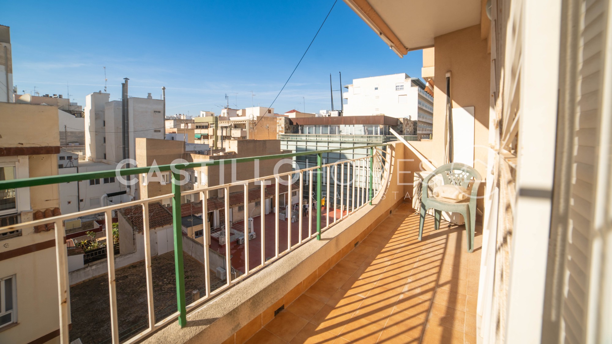 This bright and spacious 121 m² apartment is located in the heart of Torrevieja, in the Muello Pesquero area, just steps away from the promenade, restaurants, and local amenities. Situated on the 5th floor of a building with an elevator, this property offers the perfect combination of a central location, generous space, and the opportunity to create your dream home. Upon entering the apartment, the spacious living room is to the right, leading to a sunny balcony. To the left, the first bedroom faces the quiet inner courtyard and has built-in wardrobes. Next is a bathroom with a bathtub, followed by the second bedroom, also overlooking the courtyard, ensuring peaceful and quiet sleeping spaces. The dining area is the heart of the home, featuring beautiful wooden beams on the ceiling and elegant details that create a warm and inviting atmosphere. From the dining room, you access the spacious kitchen and the master bedroom, which includes an ensuite bathroom with a shower. All rooms are bright and spacious, and the practical layout makes everyday living effortless. The central location makes this home particularly attractive: all amenities are within walking distance – restaurants, beaches, the breakwater, the soon-to-be-completed large shopping center, and the town hall. This property is perfect as a permanent residence or a holiday home, offering comfort, style, and practicality in the very heart of the city. Floor: 5 out of 8 SUMA/IBI (property tax): 422 € per year COMUNIDAD (Association fee) : 48 € per month