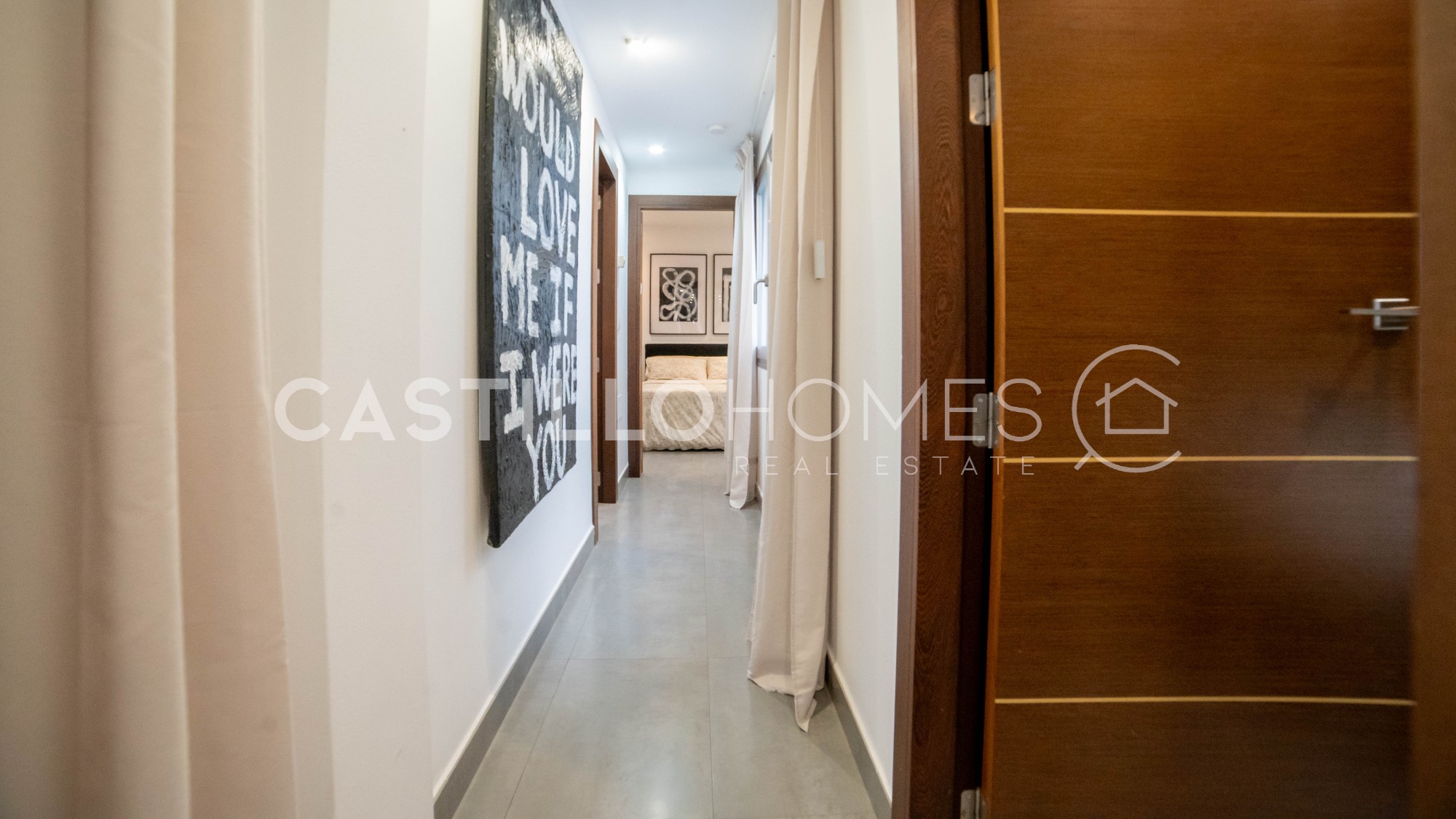 This modern and well-maintained three-bedroom, two-bathroom apartment is located in a building with an elevator right in the heart of Torrevieja on the pedestrian street. The apartment occupies the entire floor, providing extra peace and privacy despite the central location. Upon entering, you are welcomed into a spacious dining area that flows seamlessly into the bright living room. From the living room, you can access the balcony with beautiful views over the pedestrian street. The space is airy and inviting, perfect for everyday living and spending time with family or friends. Adjacent to the living room is a separate kitchen, which is spacious, modern, and filled with natural light. The kitchen offers excellent conditions for cooking and daily convenience. To the left from the entrance hall is the first bathroom, equipped with a bathtub. All bedrooms face the inner courtyard, ensuring quiet nights and privacy despite the busy central location. The master bedroom has its own en-suite bathroom with a shower. The location is unbeatable in the heart of Torrevieja. The sea and beach are just a short walk away. Around the corner, you will find cafés, restaurants, supermarkets, pharmacies, and all essential services. This home combines the proximity to the Mediterranean with the vibrant city life. The apartment is ideal for a family who values a central location and wants to live within walking distance of all amenities, without compromising on peace and comfort. Floor: 3 out of 4 SUMA/IBI (property tax): 474 € per year COMUNIDAD (Association fee) : 100 € per month