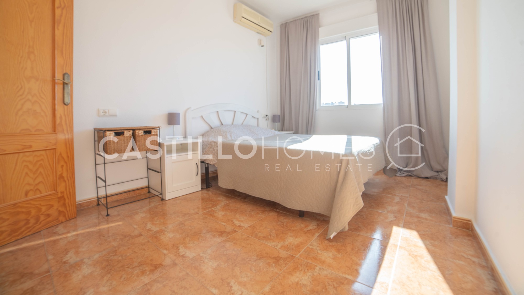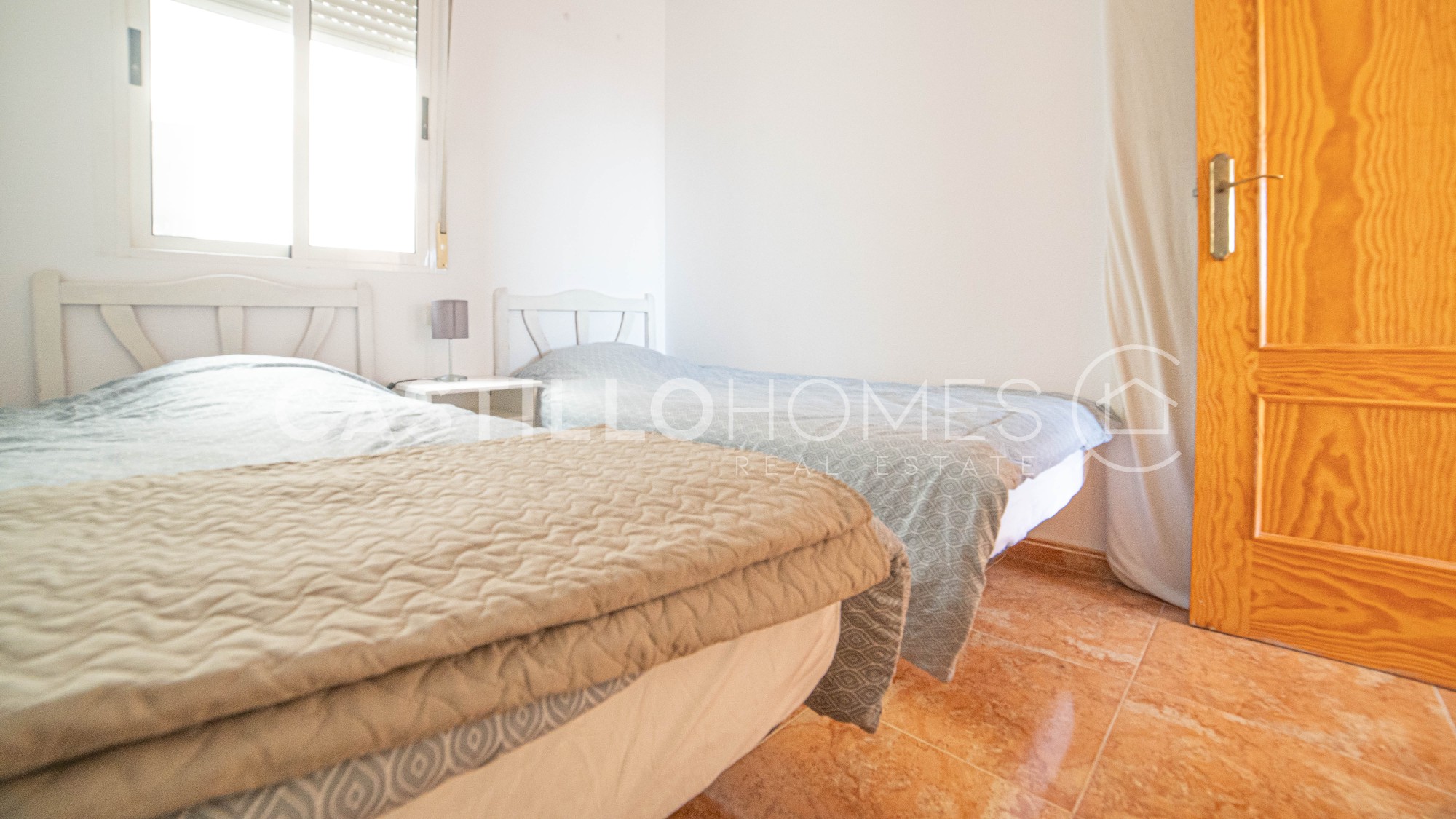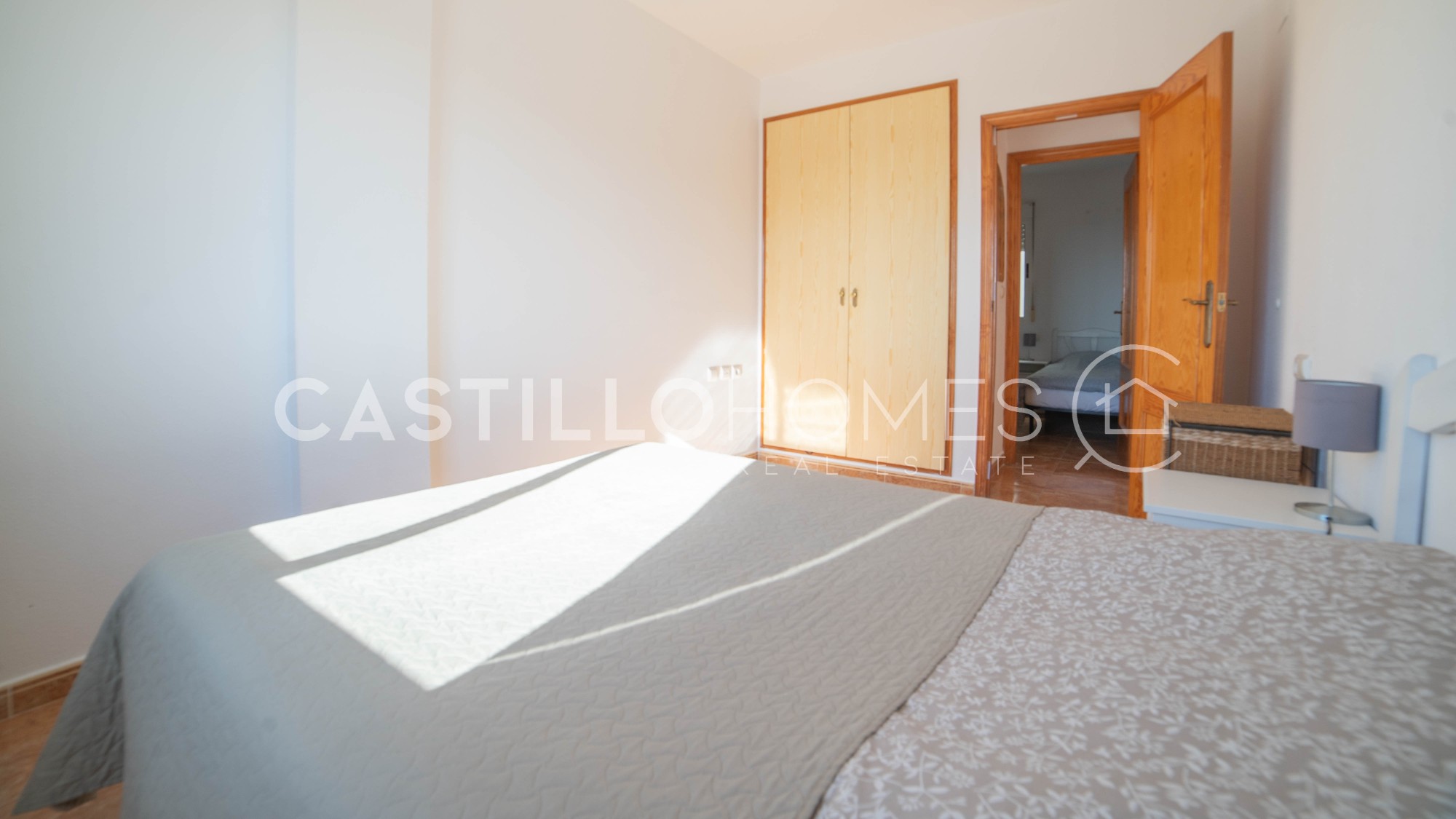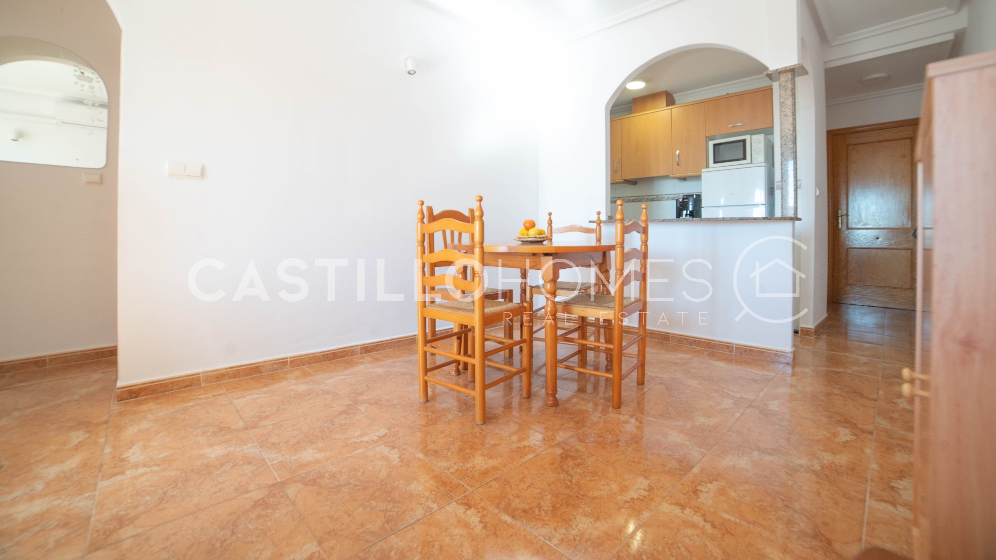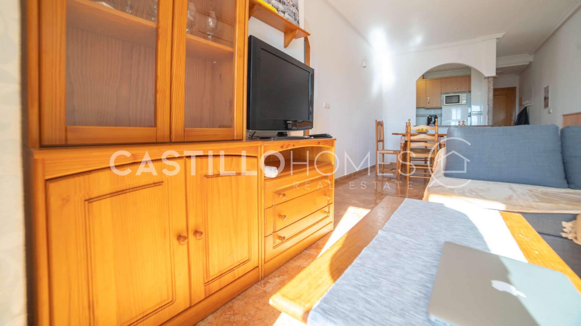 Bright and practical 63 m² apartment on the 4th floor with elevator, ideal for both permanent living and vacation use. The apartment is move-in ready, sold fully furnished, and in its original condition. It has two bedrooms, a bathroom with bathtub, and a spacious living room with a semi-open, fully equipped kitchen that opens onto a south-facing balcony. On the balcony, you can enjoy the sun and a morning coffee while admiring the city and the distant sea on the horizon. The covered balcony allows you to enjoy good weather, and the low neighboring buildings do not obstruct the view. Such a view is rare in the area. The master bedroom window also offers the same views over the city and the distant sea, providing privacy, natural light, and a pleasant perspective. The building has a quiet interior courtyard, two community pools (one for children, with a lifeguard during the season), and CCTV throughout the property, ensuring safety and peace of mind. The location is excellent. In the immediate vicinity of El Molino, the apartment is a short walk from supermarkets (ALDI and Consum about 300 m), a gym (150 m), restaurants, bars, cafés, parks, and playgrounds. Everything you need is within walking distance, and Torrevieja’s port is less than 10 minutes away on foot. Several nearby bus lines connect you to the rest of the city as well as Alicante, Murcia, and Elche. This apartment combines a central location, comfort, city views, and distant sea views, offering excellent value for money. It is perfect for both permanent living and enjoying Costa Blanca year-round. Floor: 4 out of 4 SUMA/IBI (property tax): Pending COMUNIDAD (Association fee) : Pending