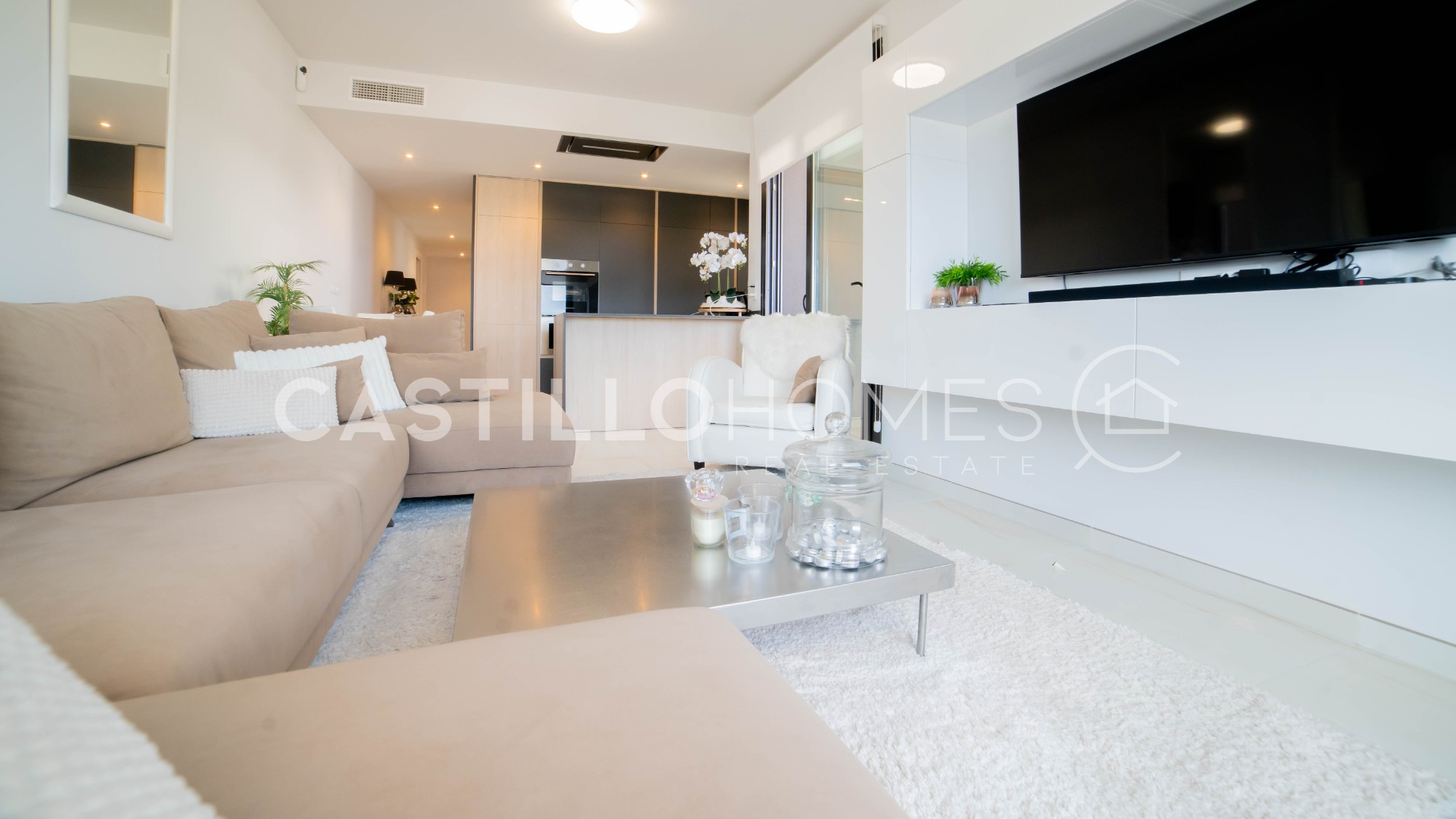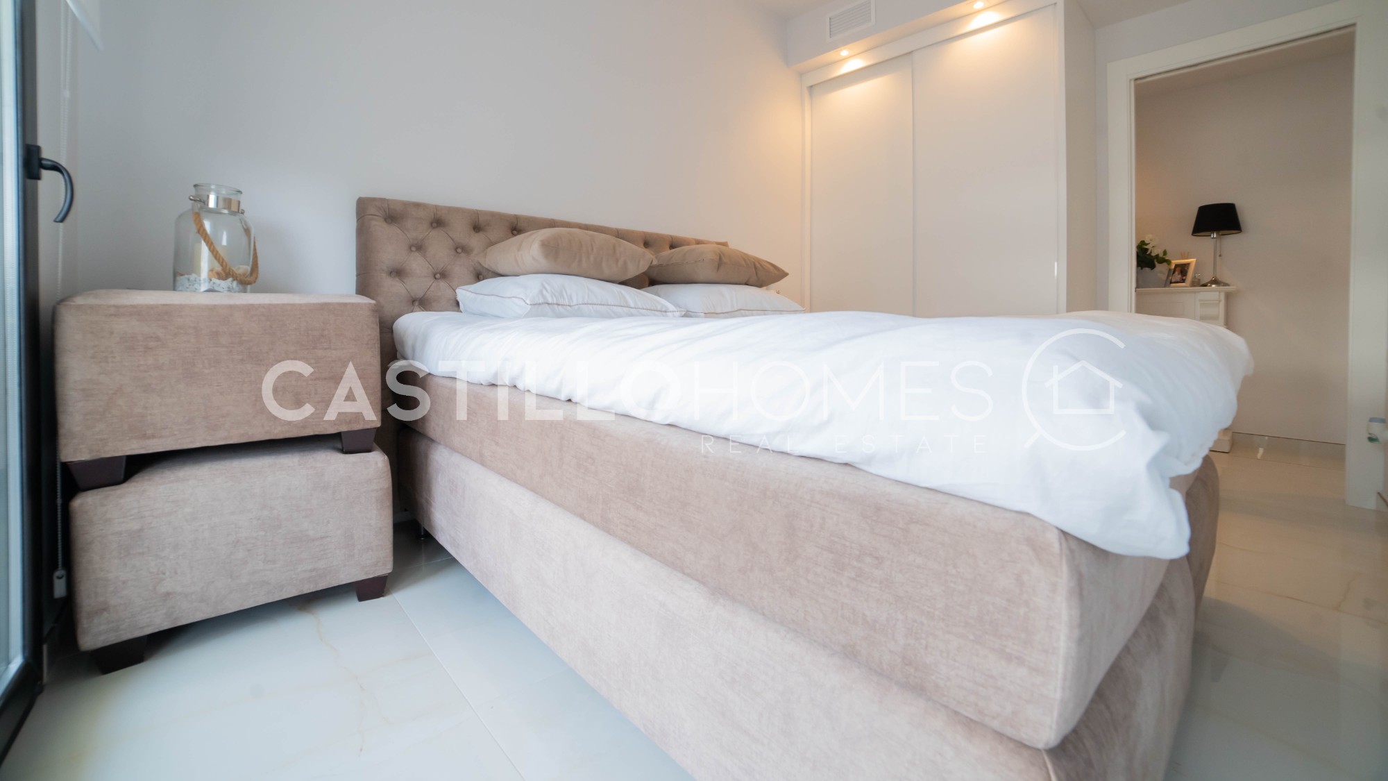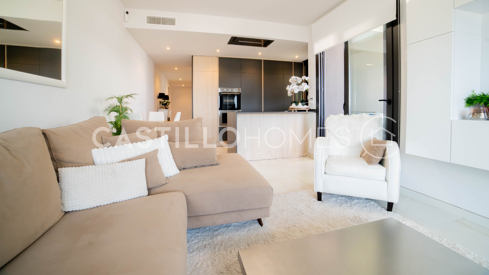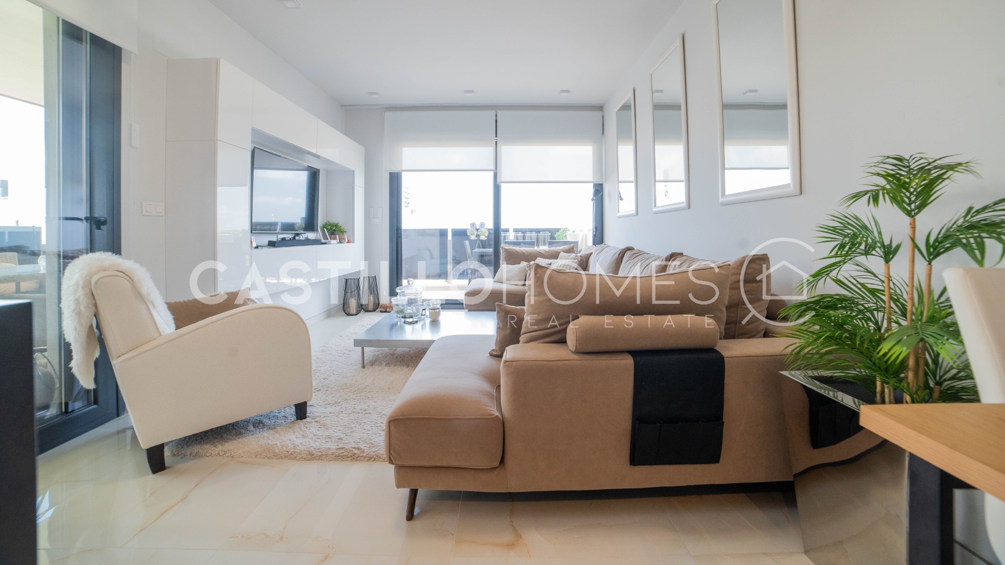 Welcome to a home where every detail has been carefully selected – a residence that truly radiates character, style, and quality of life. This renovated apartment of 98.5 m² offers a harmonious atmosphere with generous social areas, an abundance of natural light, and a well-thought-out layout that makes the entire home feel both spacious and cosy. The heart of the home is the open-plan kitchen that flows seamlessly into the living room – a space where family and friends can gather, cook together, chat, and enjoy each other’s company without anyone being left out. Large glass doors blur the boundary between inside and out, leading you to the fantastic terrace that stretches along the full length of the apartment. From here, you have a sea view – a view that turns every morning coffee, lunchtime, and evening drink into a moment to appreciate. The apartment offers three bright bedrooms, all with direct access to the terrace – providing a luxurious sense of privacy and freedom. One of the rooms is a master bedroom with an en-suite bathroom, perfect for those who value comfort and seclusion. A second bathroom is also available, both designed with modern, tasteful materials. An added bonus is the double garage space and a large private storage room – practical features that offer convenience, extra space, and secure parking for two vehicles. The residential complex is a major advantage – with an inviting communal pool and sun loungers, where you can enjoy the sun, cool off on hot summer days, or take a relaxing evening swim. For those who enjoy an active lifestyle, a gym and a sauna are also available – all within easy reach. Playa Flamenca is an area where everything you need is close at hand. You’ll find supermarkets, pharmacies, cosy cafés, restaurants, and bars – and you're within walking distance of both the beach and the popular La Zenia Boulevard shopping centre. The well-attended Saturday market is also just a stone’s throw away, and for golf enthusiasts, several courses are easily accessible nearby. This is more than just a property – it’s a lifestyle. A home for those who want to live comfortably, enjoy every day, and combine a holiday atmosphere with long-term living. Whether you're looking for a year-round residence or a sunny retreat – this is a place where you’ll feel at home from the very first moment. Floor: 3/4 SUMA/IBI (property tax): Pending COMUNIDAD (Association fee) : Pending