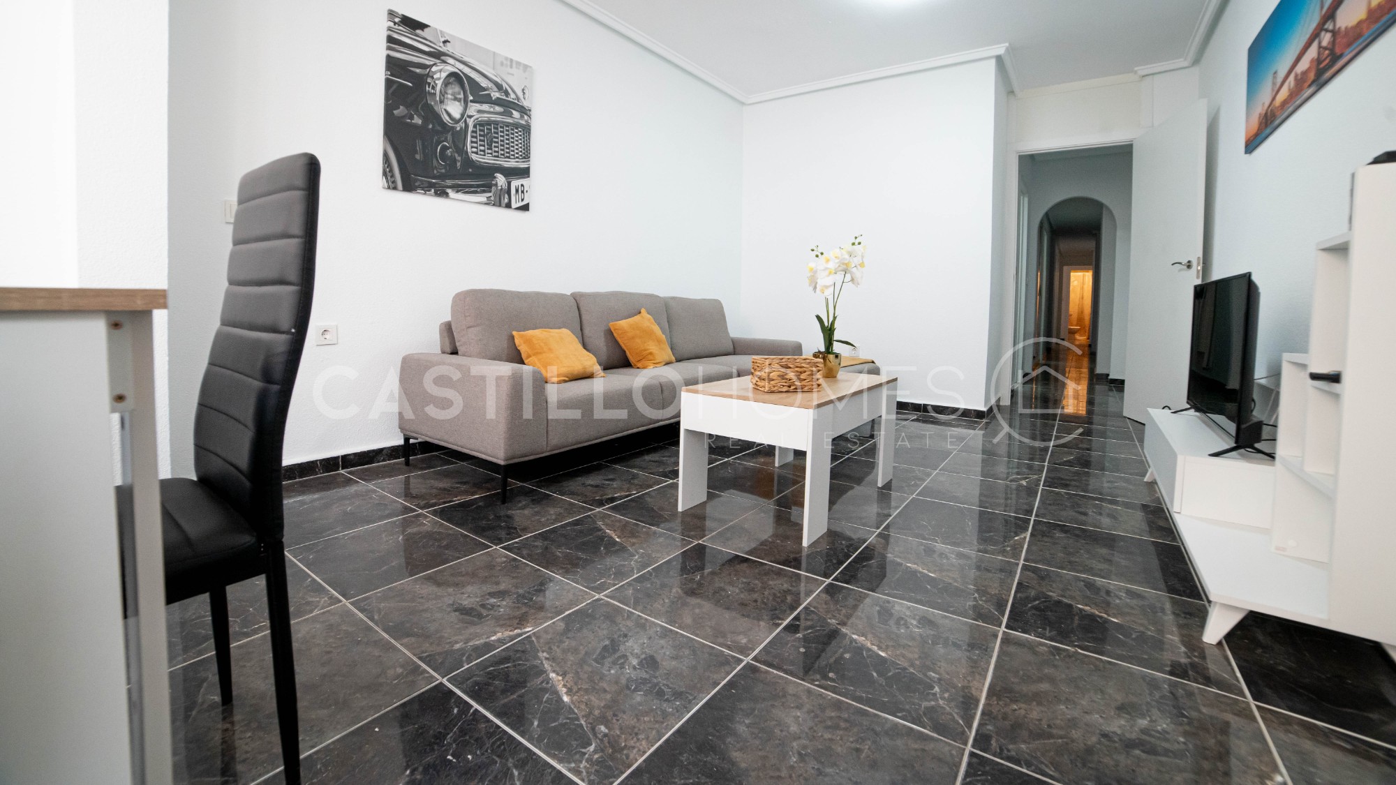 Spacious 3-Bedroom Apartment in the Heart of Torrevieja – Move-In Ready! For sale: a fantastic 95 m² apartment located in central Torrevieja, just steps away from Mercadona and the main bus station, with all amenities nearby. The property offers 3 bedrooms and 2 full bathrooms, making it ideal for families or as a holiday rental investment. It features a bright and spacious living room and a private patio with access to a terrace, perfect for enjoying the outdoors. Sold fully furnished, the apartment includes ceiling fans in several rooms and air conditioning in one of the bedrooms, ensuring comfort throughout the year. Set in a central yet quiet area, this is a great opportunity for a permanent residence or a second home. Don’t miss out – schedule a viewing today! Floor: 1 out of 4 SUMA/IBI (property tax): 270 € per yearCOMUNIDAD (Association fee) : 40 € per month