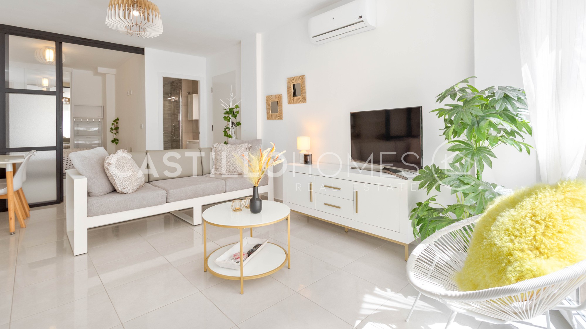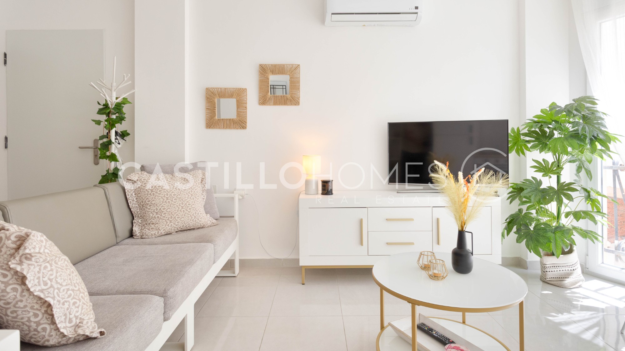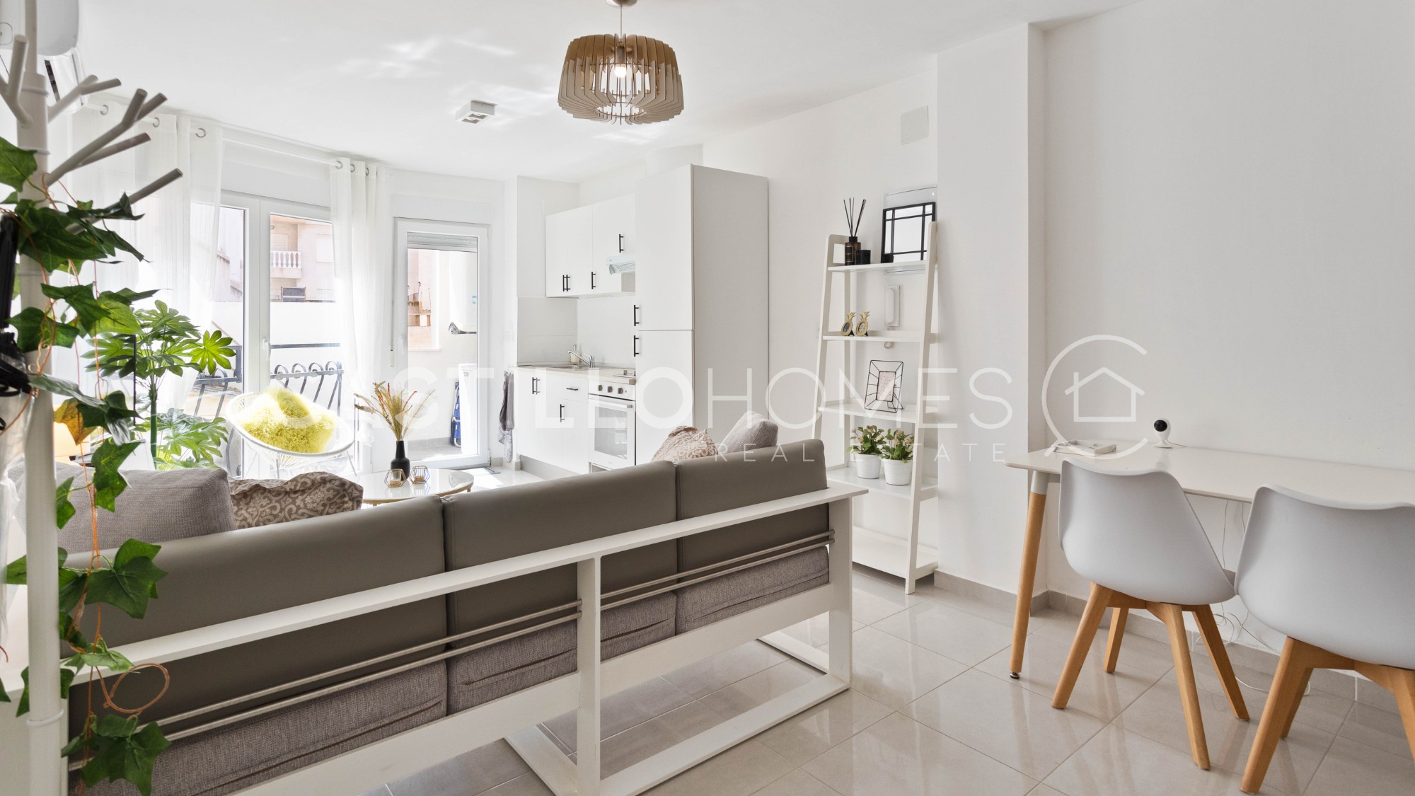 Welcome to this stylish and thoughtfully designed studio in the heart of Torrevieja – a home where design, functionality, and comfort come together beautifully. Every square meter has been carefully used to create a space that feels both inviting and surprisingly spacious. The modern renovation features carefully selected materials and furnishings that create a calm and cohesive atmosphere throughout. The generous natural light truly defines this home. Large windows, which can be opened like doors, allow sunlight to flood in and create a seamless connection between indoor and outdoor living. It’s the perfect spot to enjoy a morning coffee or relax in the sun during the day. A standout feature is the sliding frosted glass doors that separate the sleeping area. When closed, they create the feeling of a private bedroom, while still allowing light to flow through. When opened, the space returns to its airy, open-plan layout – offering the best of both worlds. Smart storage solutions are integrated throughout, including built-in wardrobes, mirrored details that enhance the sense of space, and a bed with additional storage. The community also offers a rooftop terrace with a pool – ideal for sunny days, refreshing swims, or simply relaxing with a good book. The location is unbeatable. Everything you need is just outside your door – restaurants, cafés, supermarkets, and services. The central bus station and taxis are nearby, and within a short walk you’ll reach the beach and promenade. A perfect home for holidays or year-round living – small in size, big in feeling. Floor: 1 / 4 SUMA/IBI (property tax): 158,02 € per year COMUNIDAD (Association fee) : 59,33 € per month