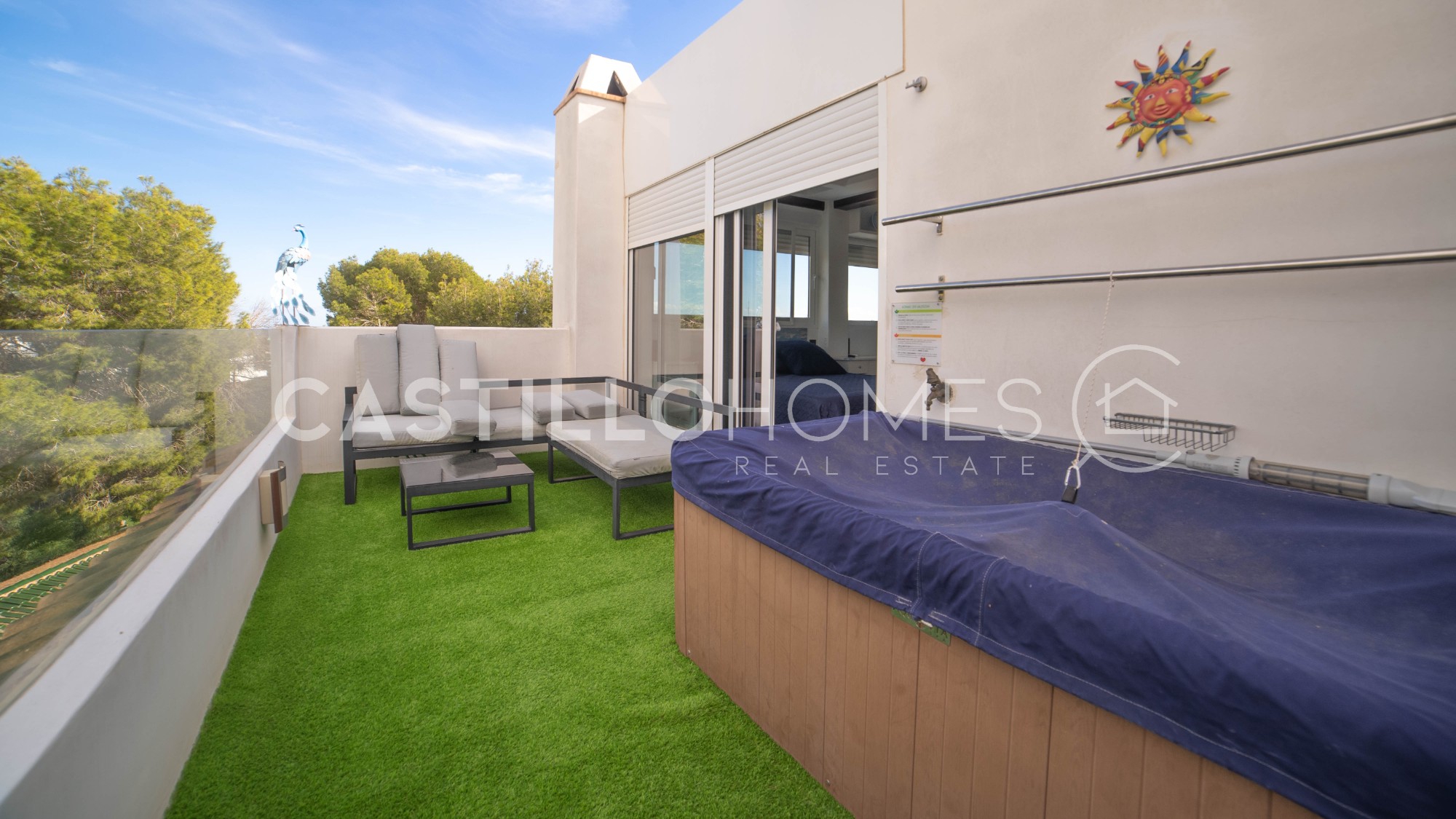 This stunning detached house in Lomas de Don Juan, Orihuela Costa, perfectly combines modern elegance with a warm and natural atmosphere, offering an ideal home both as a permanent residence and a holiday property. The house features three spacious bedrooms, two full bathrooms, a bright living room, and a fully equipped modern kitchen, all thoughtfully designed for comfort and functionality from the moment you step in. The heart of the home is its large, well-maintained garden, a true oasis to enjoy sunny days and outdoor living. The property includes a private pool, jacuzzi, covered terrace, and barbecue area, creating the perfect setting for relaxation, family meals, or celebrating special occasions. In addition, solar panels make the home energy-efficient and environmentally friendly. Large windows fill every space with natural light, while the interior design blends natural materials with contemporary style, creating a harmonious, welcoming, and sophisticated atmosphere. Every corner is designed to provide comfort, practicality, and beauty. The location is unbeatable: Lomas de Don Juan, Orihuela Costa, just minutes from shops, restaurants, golf courses, and the famous Cabo Roig beach. The property offers privacy, tranquility, and all the comforts of a sunny Mediterranean lifestyle, making it ideal for permanent living, a vacation home, or an investment. SUMA/IBI (property tax): 212 € per year COMUNIDAD (Association fee) : No fee