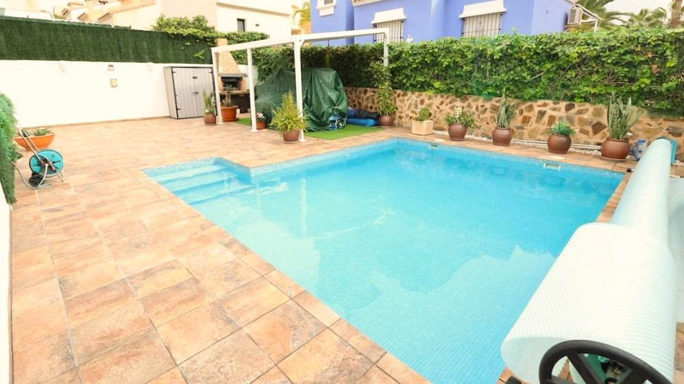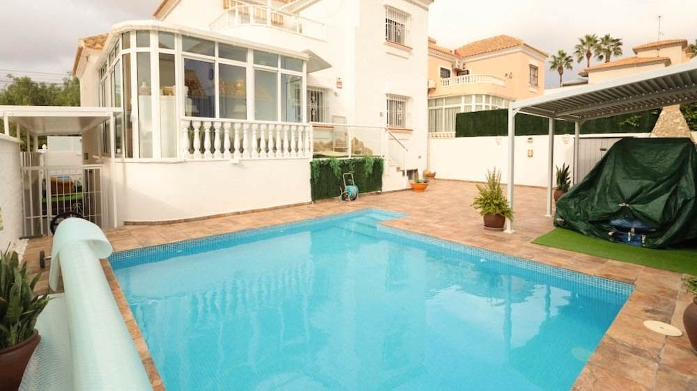 Located in the established and sought-after residential area of El Galán, next to Las Filipinas, this beautifully renovated detached villa stands out for its spaciousness, brightness, and exceptional versatility. Positioned opposite a park in a მშვიდ and pleasant environment, it also offers excellent access to all amenities. The property boasts generous indoor and outdoor spaces designed to fully embrace the Mediterranean lifestyle. Outside, you will find a well-maintained garden area with a private swimming pool, a chill-out zone with pergola, a barbecue area, and private parking, along with recent upgrades that enhance both comfort and functionality. One of the key highlights is the independent basement apartment, with its own private entrance and approximately 60 m² of space. This versatile area is currently distributed as an entrance hall, office and living area, double bedroom, full bathroom, laundry room, and ample storage. There is also the possibility to create one or two additional bedrooms, making it ideal for guests, rental use, or independent living. Additionally, it includes a large separate storage room. The main house is distributed over two floors. On the ground floor, an elegant glazed porch leads into a welcoming entrance hall, followed by a double bedroom with built-in wardrobe, a full bathroom, a spacious living-dining area, and an independent kitchen. From the kitchen, there is access to a bright conservatory with direct access to the rear garden. The upper floor offers two double bedrooms, one currently used as a dressing room, along with a full bathroom and a pleasant terrace overlooking the garden. The property is sold semi-furnished according to inventory and is presented in excellent condition, ready to move in. A residence that combines space, privacy, and multiple possibilities in a strategic location, ideal both as a family home and as an investment on the Costa Blanca.